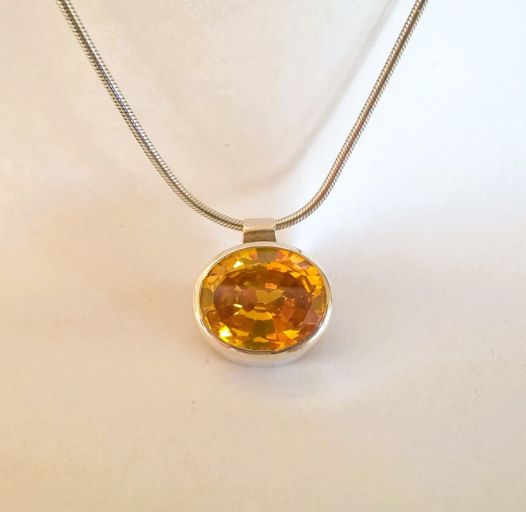 Zilveren ketting met een grote geslepen citrien steen