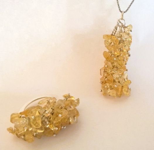 Zilveren ring en ketting met citrien steentjes