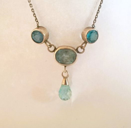 zilveren ketting met geslepen aquamarijn steentjes en druppel