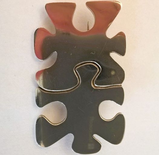 Broche van zilveren puzzelstukjes