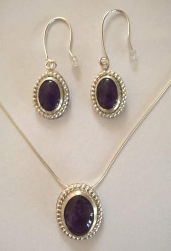 Zilveren ketting en oorbellen met amatist steneN