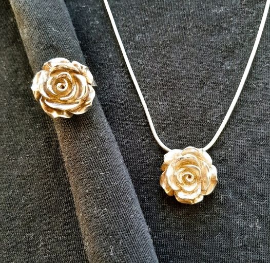 Zilveren ketting en ring met een roos
