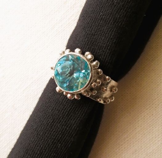 zilveren ring met geslepen aquamarijn